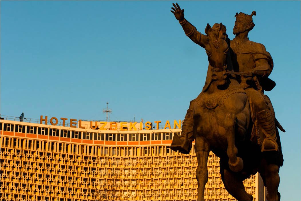 Rano dojeżdżamy do Taszkientu. Wpierw chcemy załatwić w OVIR zmianę miejsca przekraczania granicy. Odwiedzamy kilku Bardzo Ważnych Urzędów. I nic się nie da załatwić. NA ulicy zaczepia nas młody Uzbek. Widząc nasze zafrasowane miny, zapytał o co chodzi. Wysłuchał, pomyślał. Zaprowadził nas do pobliskiej restauracji z dobrym i niedrogim jedzeniem. Wspomniał, że ma jakieś znajomości w urzędach. Dzwoni. Rozmawia. Kombinuje. W miedzyczasie wymienia nam pieniądze, użycza ipoda byśmy mogli sobie sprawdzili pocztę. Pracuje w tutejszym PZPNie, szefuje oficjalnemu klubowi kibica reprezentacji. Pokazuje nam swoje zdjęcia z Christiano Ronaldo, z szefem UEFA i jakimiś innymi znanymi piłkarzami. Szczęsliwie pomijamy temat poziomu polskiej reprezentacji. Dziś wieczorem jest gorący mecz w lidze. Derby Taszkientu. Może mamy ochotę obejrzeć? No pewnie, że mamy. Umawiamy się na wieczór. Aczkolwiek wszystko zależy jak nam pójdzie z naprawą auta. Znajdujemy serwis. Auto w naprawie, można wyskoczyć do centrum. Jedziemy metrem, wysiadamy przy pomniku Matki Płaczącej. Samo centrum. Budynki rządowe, szkło, aluminium. Dużo zieleni, alejki fontanny