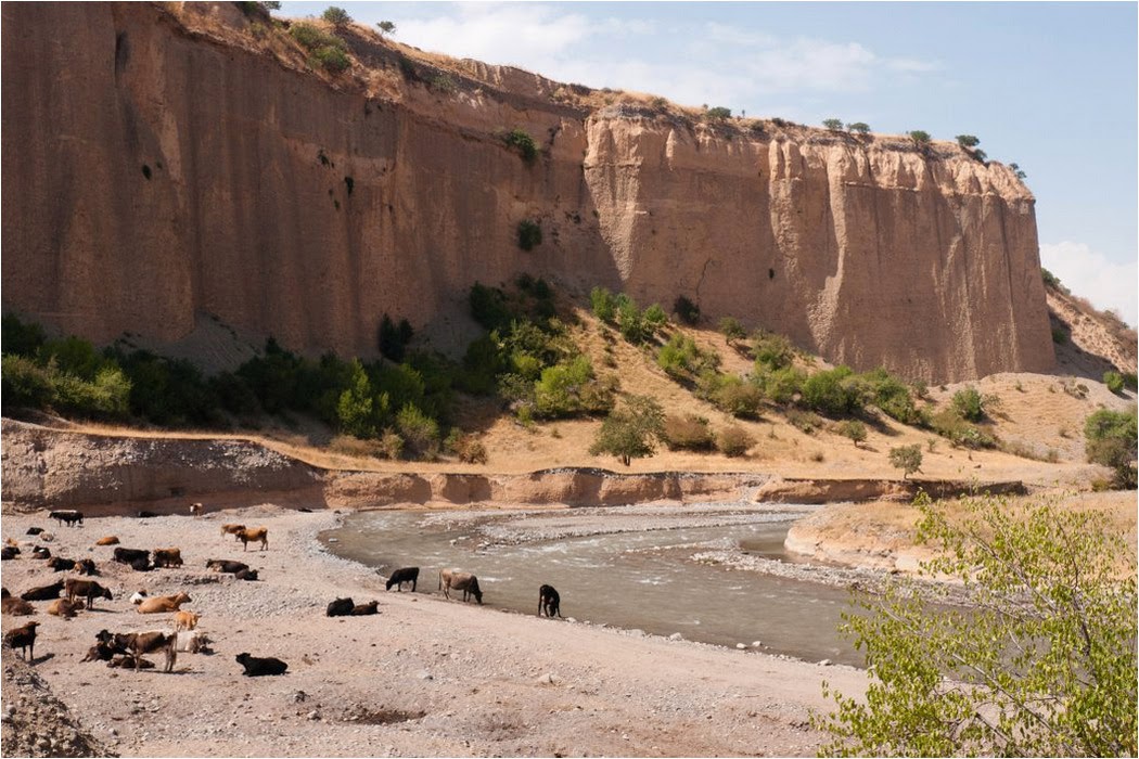 Tutejsze góry są już zupełnie inne. Pojawia się roślinność. Zieleń i drzewa. Mijamy mnóstwo uli.
