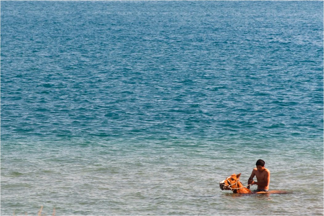 Nie może się obyć bez Kirgiza na koniu. Ci to nawet kąpią się z koniem 😉