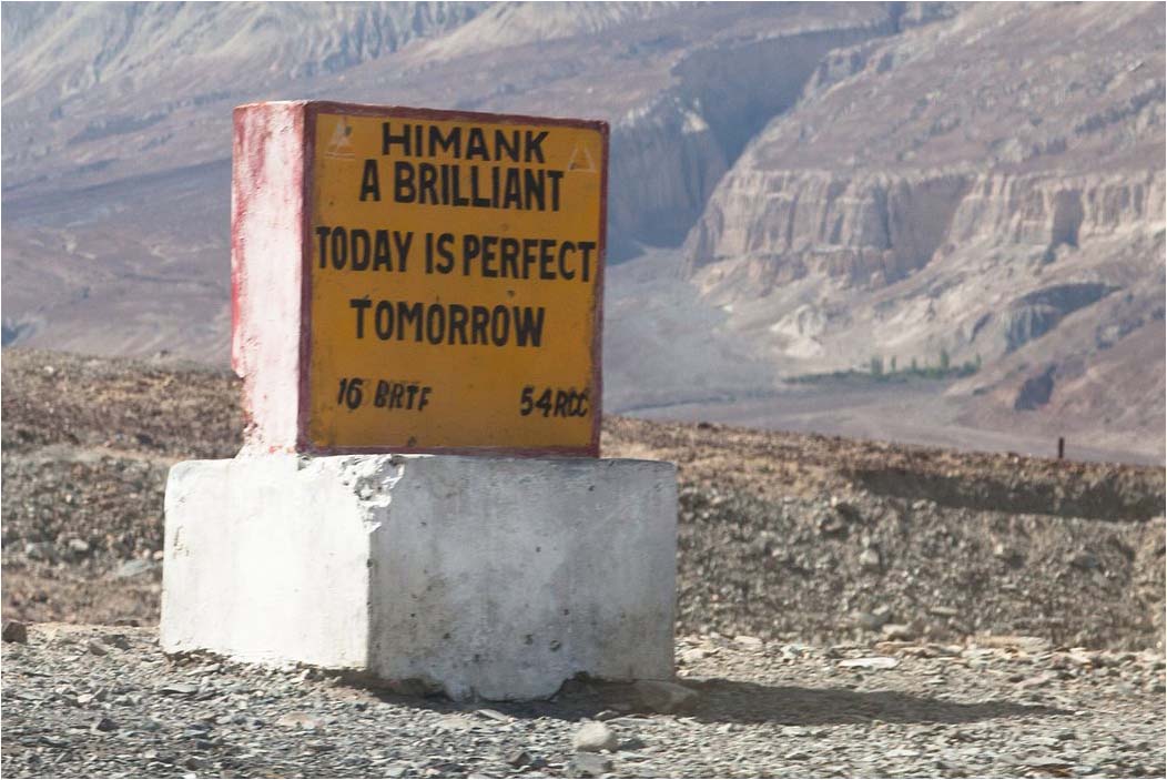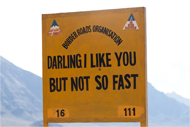 Jedną z ciekawszych rzeczy, które spotkaliśmy w Ladakhu były bardzo interesujące przydrożne tablice. Było ich naprawdę dużo, rzucały się w oczy. Różnorodność, humor, dosadność, styl – tak, nad tym musiała pracować kreatywna i pomysłowo ekipa. Ale może przejdźmy do konkretów.