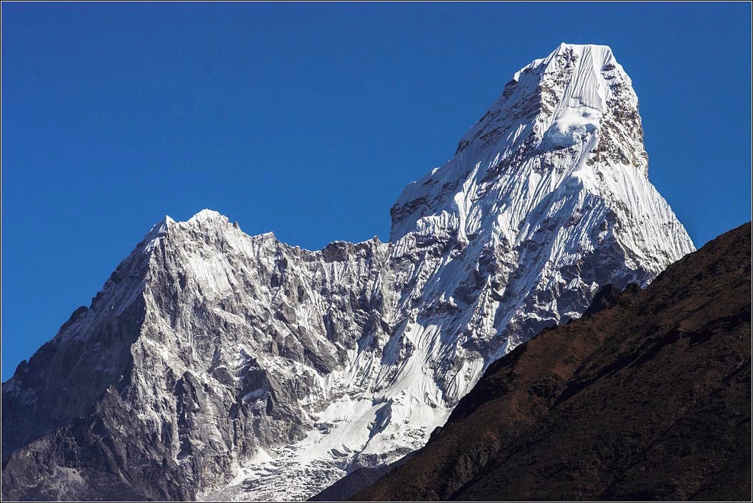 Widać położoną po drugiej stronie daliny wioskę Phortse i na prawo od niej Ama Dablam.